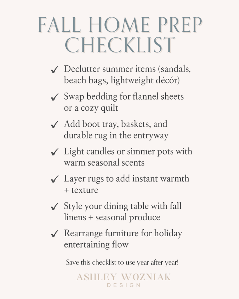 At Ashley Wozniak Design, we help clients layer timeless design with seasonal style so your home feels fresh, cozy, and functional all year long. Contact us here to get started with your personalized fall refresh.